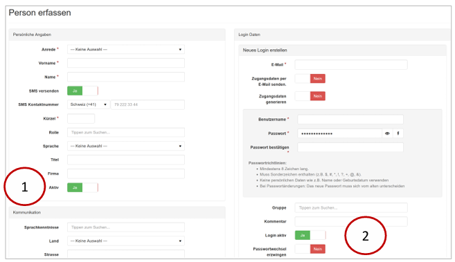 ❗Wichtig zu wissen ist, dass wir immer von 2 Bereichen unterscheiden, falls ein Login erstellt wird, resp. bei den Personen zwingend erstellt werden muss.