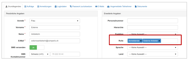 Beispiel: Eine Mitarbeiterin besucht diverse Kurse und meldet sich über das Frontend an diese an. Hier wurde unter den Teilnehmern ein Login eingerichtet. Die gleiche Mitarbeiterin ist aber für ein ganz andere Angebot auch noch Kursleiterin. Als Kursleiterin muss sie unter den Personen erfasst werden. Bei den Personen ist das Einrichten eines Logins Pflicht.