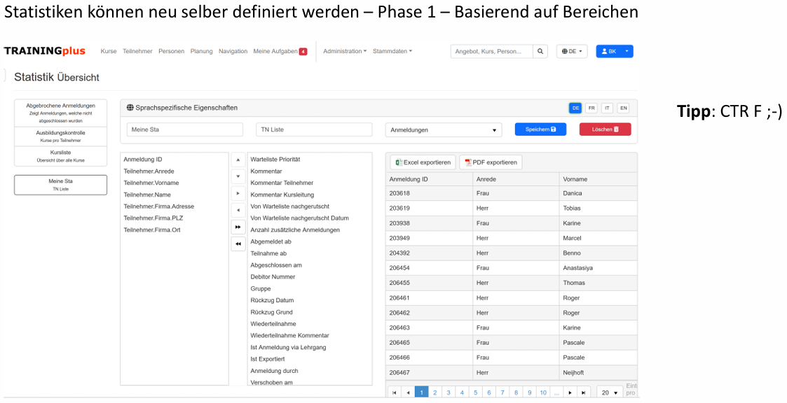 - NEU: Statistiken können selber zusammengestellt werden. In v1 können die Grunddaten ausgewählt werden.