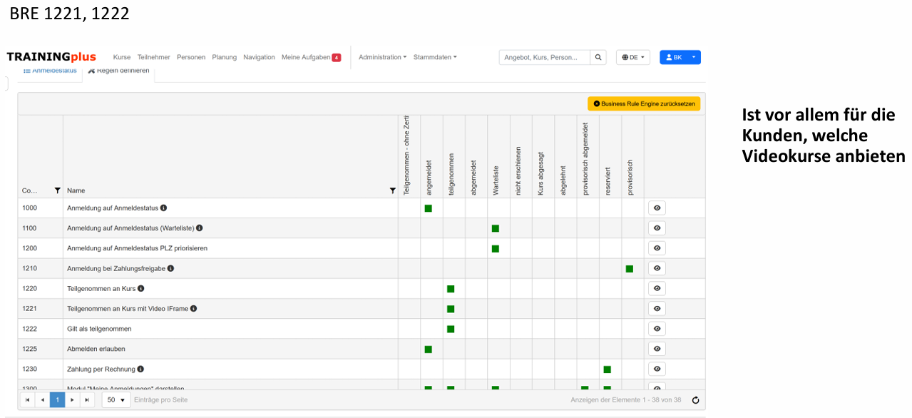 - Neue BRE's für den Anmeldestatus "teilgenommen" verfügbar.