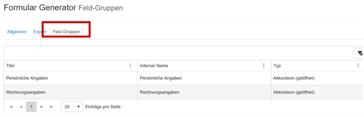 - Im FormGen können Feldgruppen erstellt werden, um Felder in einem Panel darzustellen