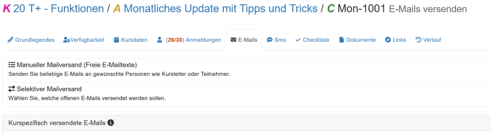 - Im Maillog vom Kurs werden Kursinfos dargestellt