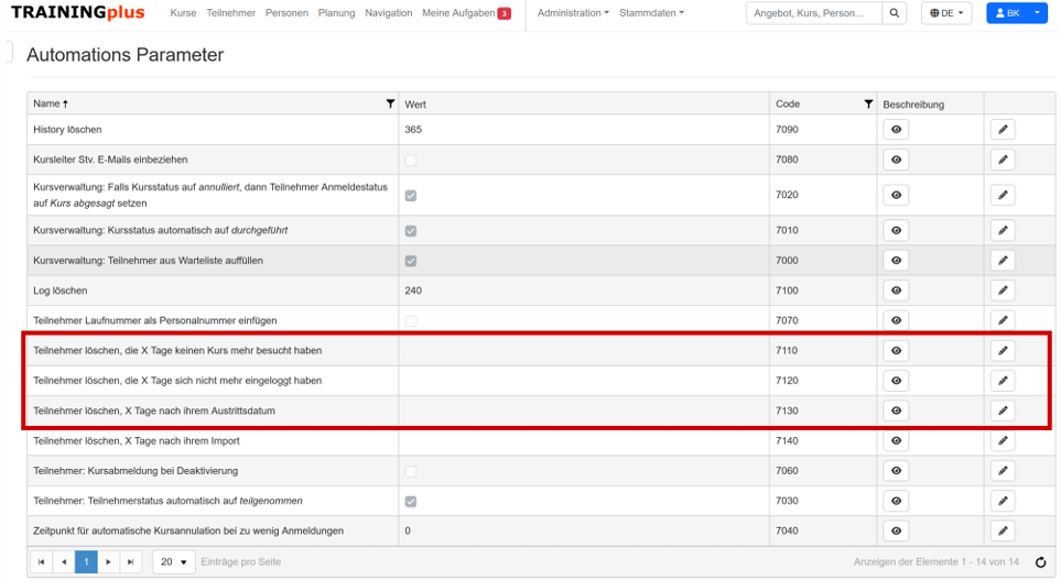 Folgende neuen Funktionen stehen in den verschiedenen Bereichen zur Verfügung Teilnehmerbereinigung. Per Einstellung können Teilnehmer automatisch gelöscht werden. Teilnehmer können anonymisiert werd…