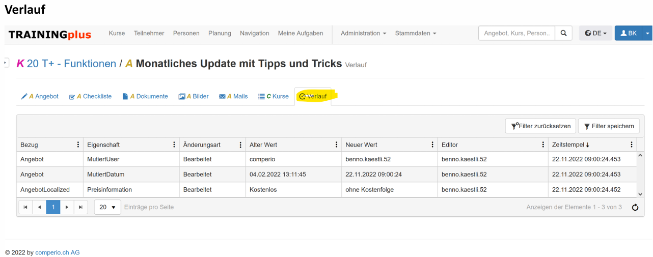 Folgende neuen Funktionen stehen in den verschiedenen Bereichen zur Verfügung Der Verlauf ist nun auf Stufe Angebot ebenfalls verfügbar. Neue Teilnehmeransicht welche ohne Teilnehmerliste erscheint.…