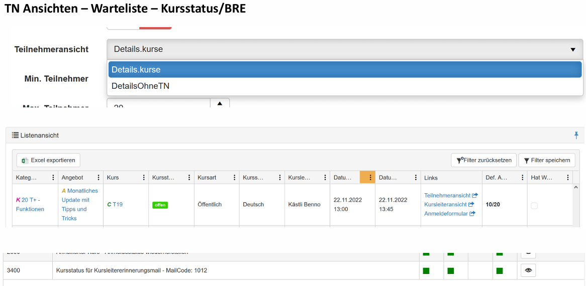 - Das Kursleitererinnerungsmail kann via BRE auf gewisse Kursstatus eingeschränkt werden