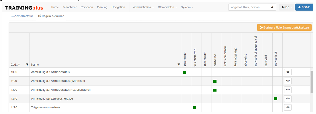 - Business Rule Engine Tabelle.