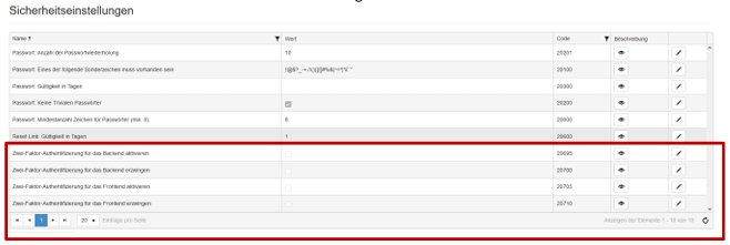 Sobald das Feature aktiviert ist, können Sie die 2-Faktor Authentifizierung nutzen. Sie können die gewünschte Funktion unter Administration – Einstellungen aktivieren: