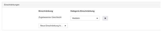 Hier können sie basierend auf den bereits bekannten Einschränkungen die Anmeldungen für gewisse Zielgruppen, ob nach Alter oder Geschlecht, die Anmeldungen einschränken.