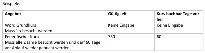 Mit der Funktion «Beil Teilnahme ins Pflichtangebot eintragen» bedeutet, dass wenn sich ein Mitarbeiter für dieses Angebot anmeldet, ab diesem Datum dann die obigen Definitionen gelten.