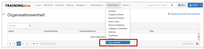 Erfassen Sie unter Stammdaten – Organisationseinheit ihre Struktur: