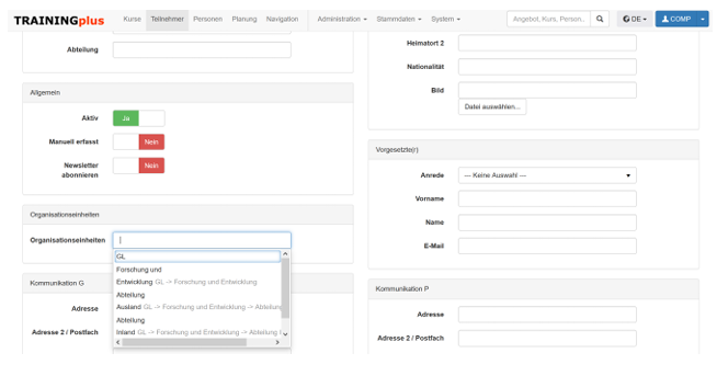 - Zuweisung der Teilnehmer zur Organisationseinheit