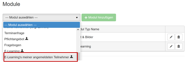 Und falls Sie unser WBT Modul nutzen, haben Sie auch die Möglichkeit, die WBT’s der Mitarbeitenden dar stellen zu lassen: