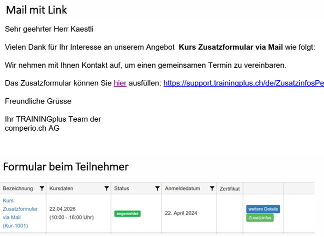 - Das Zusatzformular über den Platzhalter {{Zusatzformular Anmeldung URL}} verweist beim Speichern auf eine eigene Erfolgsseite