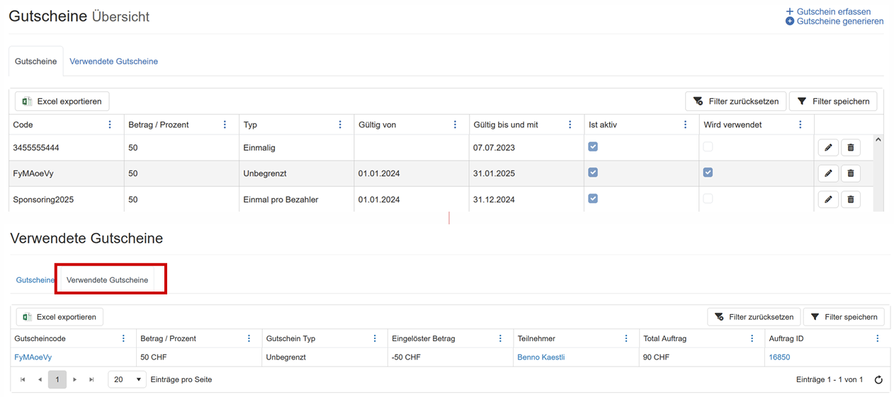 - Unter Gutscheine gibt es ein neuer Tab "Verwendete Gutscheine" mit einer Übersicht wer welchen Gutschein verwendet hat