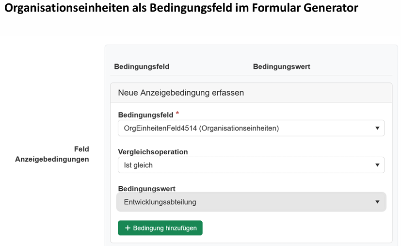 - Organisationseinheiten können für FormGen-Anzeigebedingungen genutzt werden