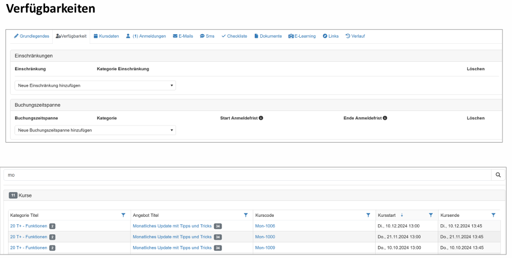 - Die Darstellung im Kurs unter Verfügbarkeiten wurde optimiert