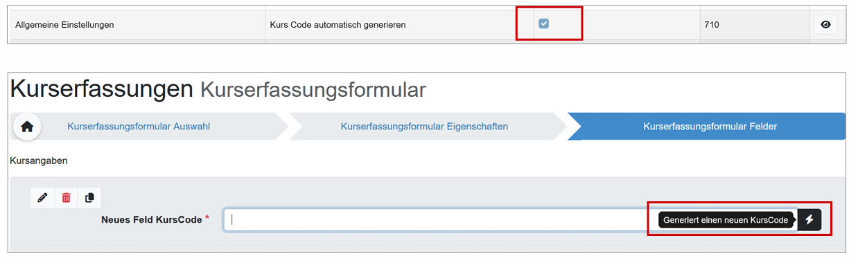 - Kurscode bei Formulargenerator für Frontend Kurserfassung optimiert