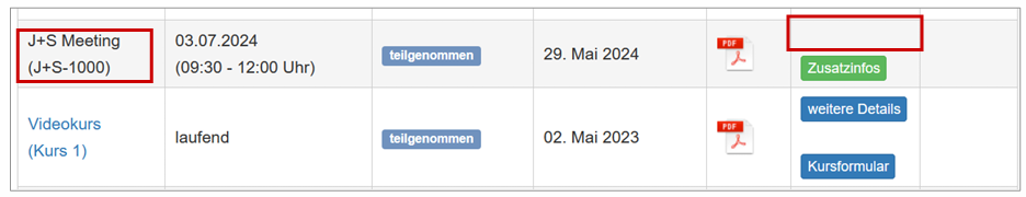 Wird bei der Teilnehmeransicht auf Angebotsebene „Keine Auswahl“ definiert, sehen die Anwender die Ansicht z.B. bei den angemeldeten Kursen nicht mehr.