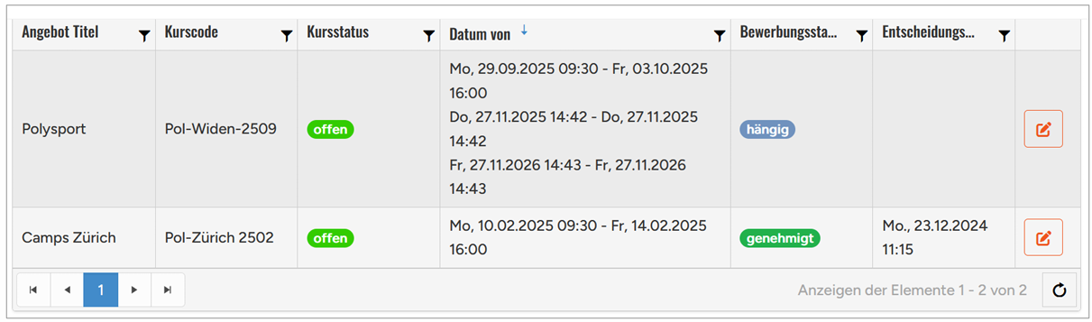 Ein Prozess für zukünftige Kursleitende mit Genehmigungsverfahren und individuellen Formularen. Hierzu wird es ein separates Manual geben.