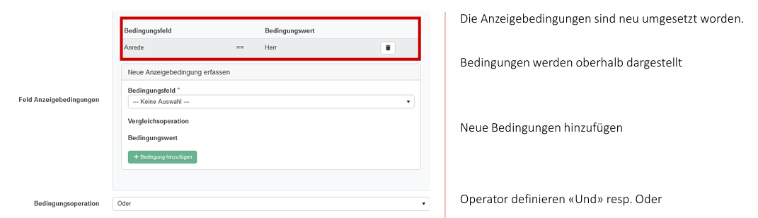 - Die Anzeigebedingungen für ein FormGen-Feld wurden komplett überarbeitet