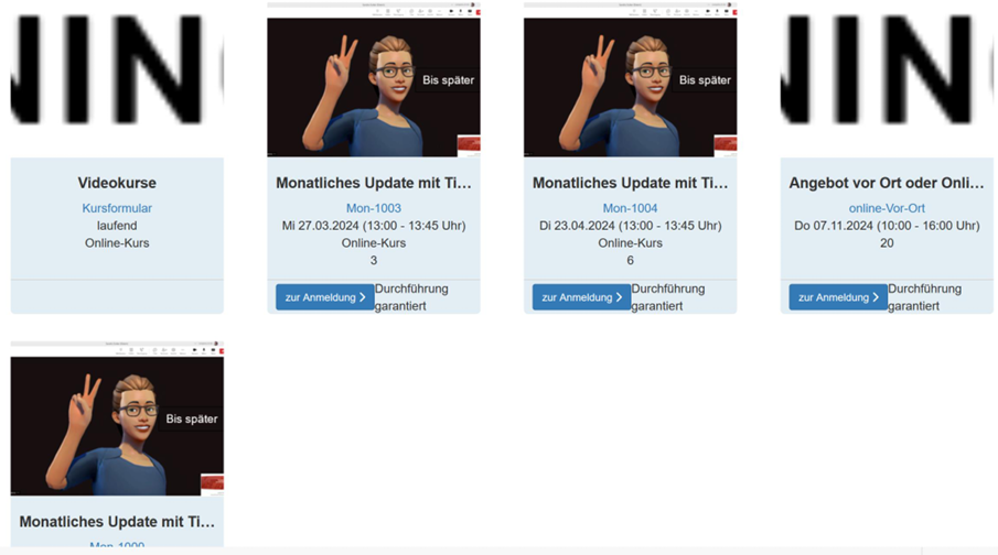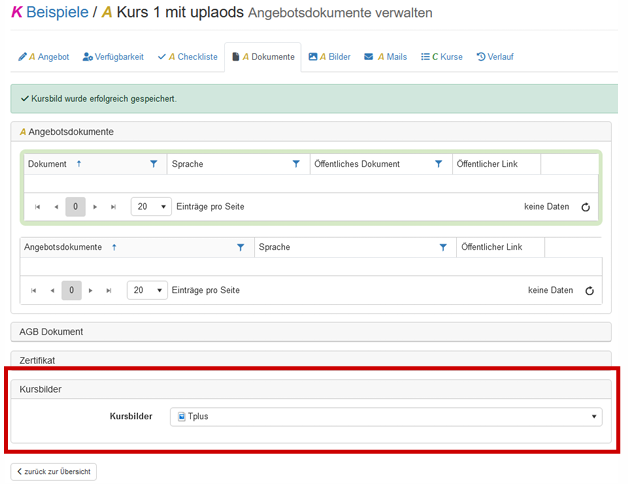 Kursbilder neu auch auf Angebotsstufe
