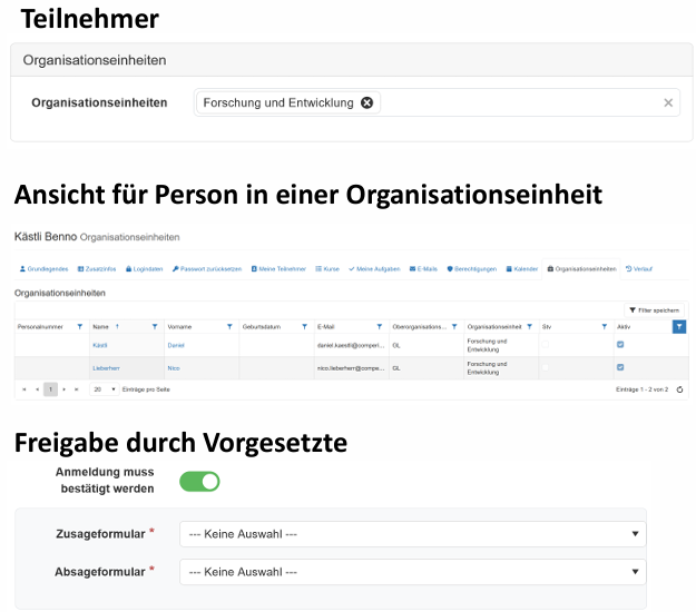 Gruppen / Rollen / Vorgesetzte – nur mit Login