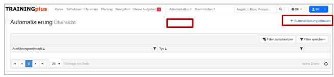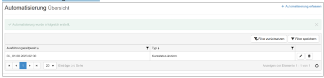 Das Feature (Einmalige Aufschaltgebühr) «Automatisierung» ermöglicht es Ihnen, die Status der Kurse au tomatisiert zu verändern. Dies wird insbesondere bei der Freischaltung von Kursen zu einem gewissen Zeit punkt verwendet. Die Funktion finden Sie unter «Administration» -> «Automatisierung: