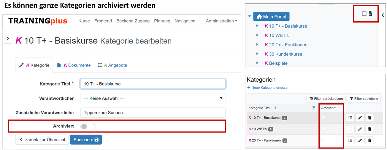 - Kategorie kann neu archiviert werden (gleich wie Angebote bisher)