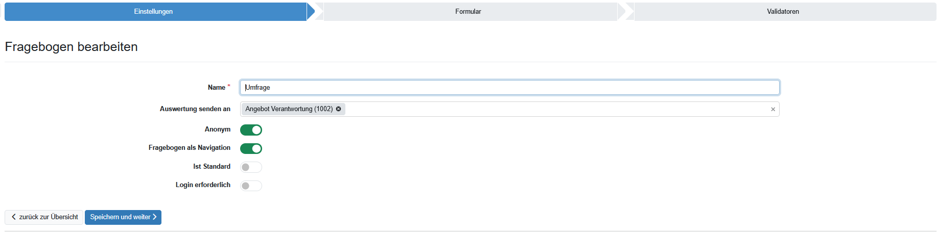 Die Erstellung eines Fragebogens erfolgt in 3 Schritten.
