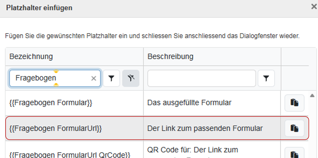 Platzhalter Fragebogen